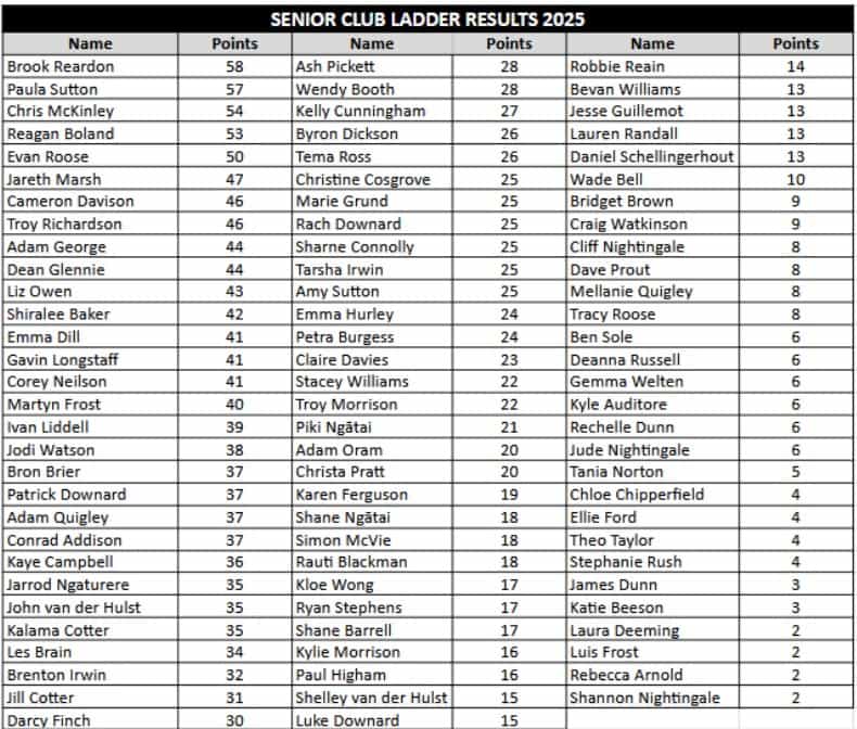 For further information about joining a Club Ladder please contact Bronwyn Brier on 0273218974; [email protected].